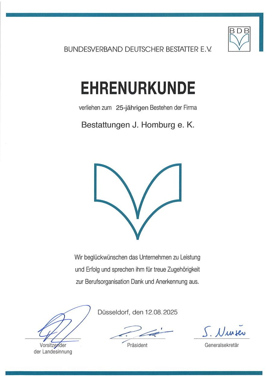 NEUER KOLLEGE BEI BESTATTUNGEN J. HOMBURG